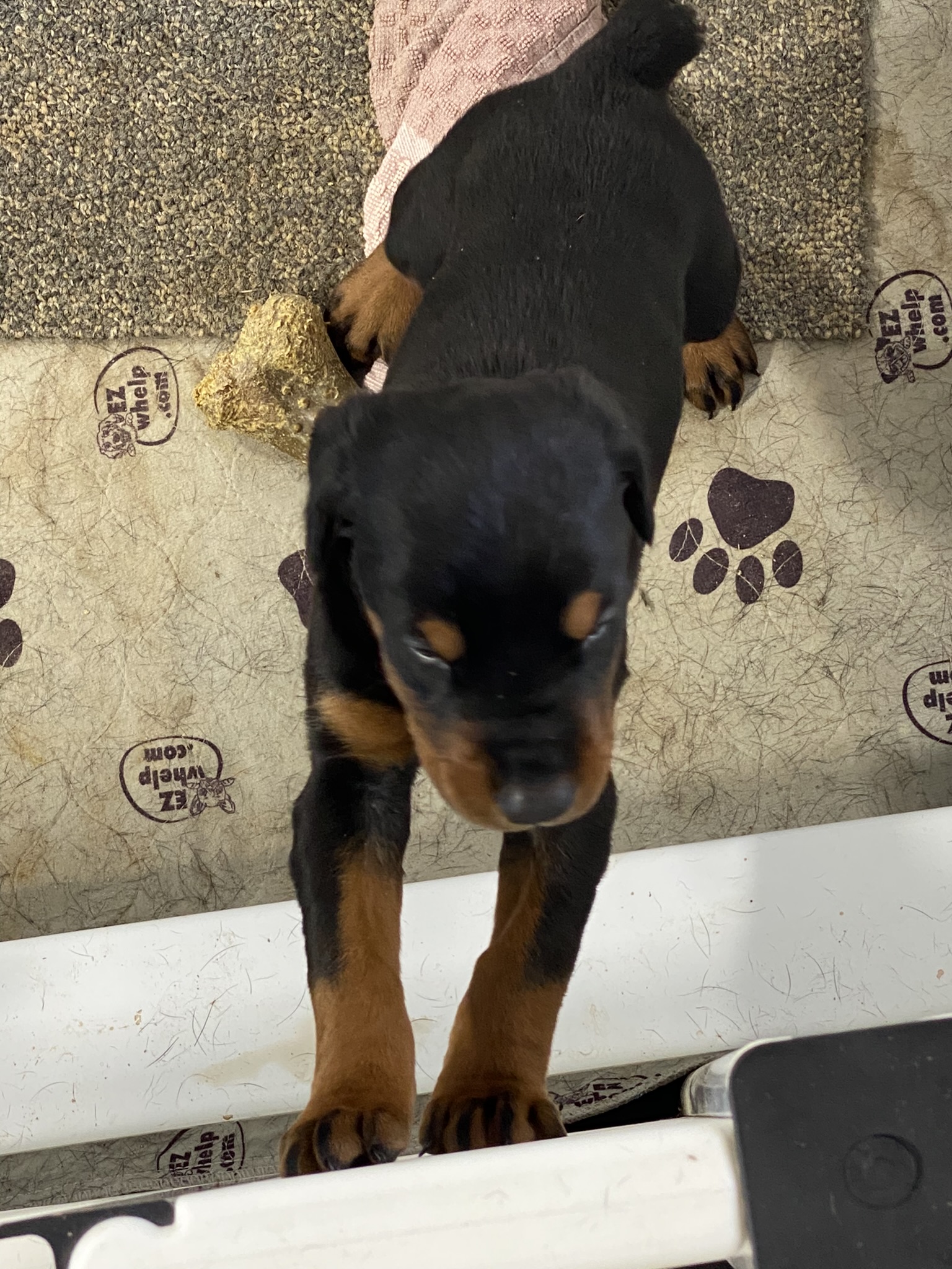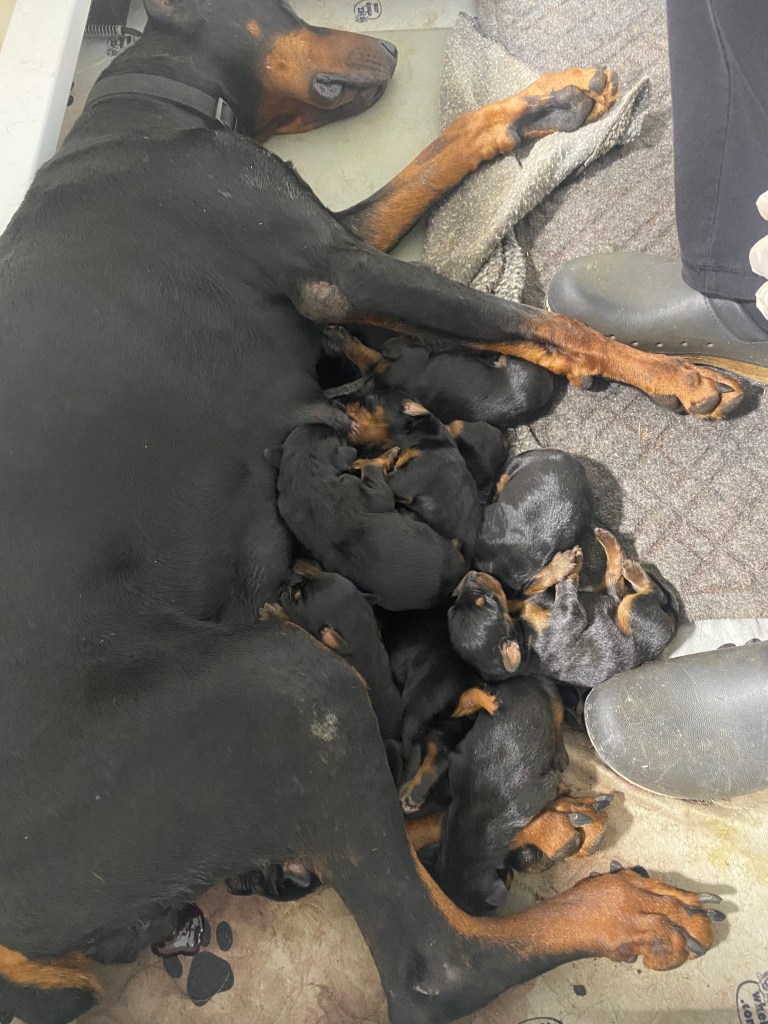 Roksana has mated with OZZIE! 9 Pups are here for sale. All are Black and Rust. 3 males and 2 females. Available for pickup June 14th, 2024